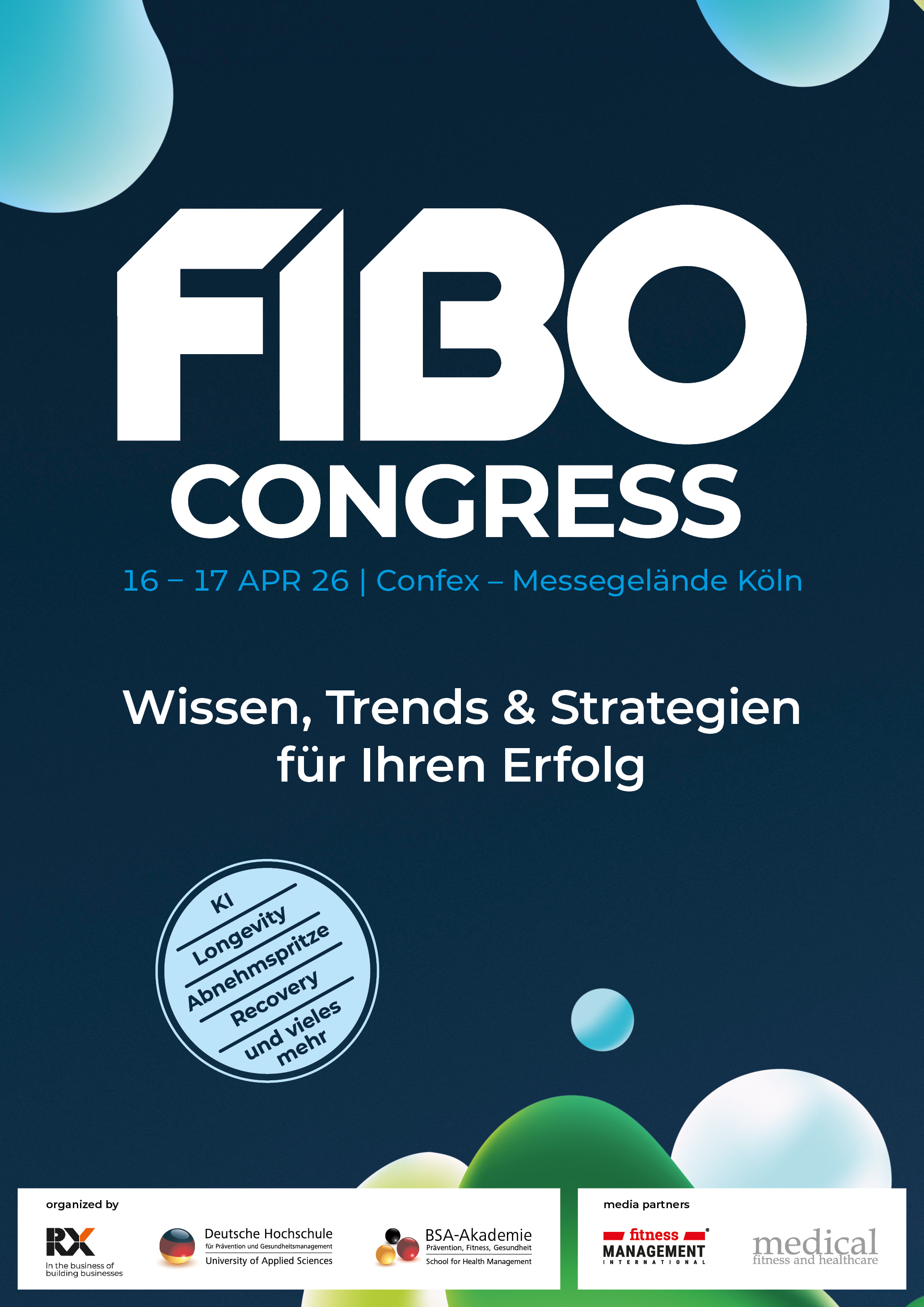 Seien Sie vom 17. bis 18. April 2026 mit dabei auf dem FIBO Congress, der im Rahmen der FIBO, der weltweit führenden Messe für Gesundheit, Fitness und Wellness in Köln, stattfindet.