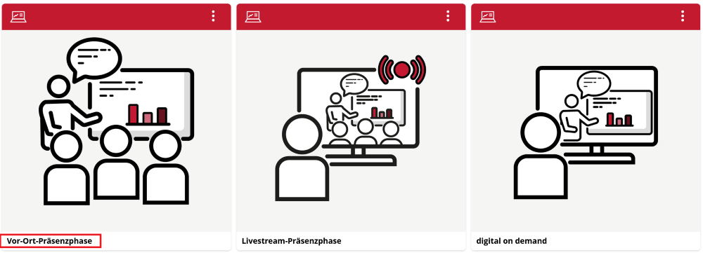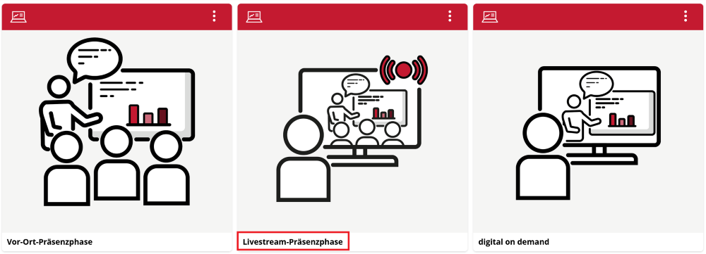 Vor-Ort-Präsenzphase | Livestream (hybrid oder online) | digital on demand